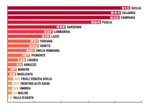 Sono le regioni storicamente segnate dalla presenza mafiosa – Sicilia in testa con 51 casi, poi Calabria (43), Campania e Puglia (41 ciascuna) – a concentrare oltre la metà degli atti censiti in questi 15 anni. Ma la minaccia si estende anche al Centro-Nord, con il Veneto in testa (23 casi), seguito dal Lazio (21) e dalla Lombardia (19).
