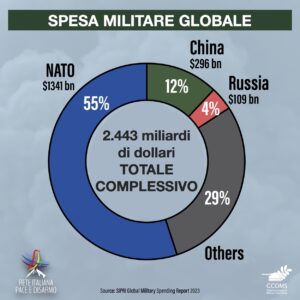 Il mondo aumenta le spese militari e il pericolo di guerra: 2.443 miliardi di dollari nel 2023. “Serve disarmo per salvare persone e pianeta” è la richiesta di Rete Pace Disarmo nell’ambito della Campagna GCOMS.
