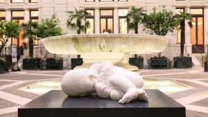 Nel cortile d’onore di palazzo Montecitorio da alcuni giorni è stata installata stabilmente l’opera dell’artista italiano Jago. La scultura, che si intitola Look Down, rappresenta un bambino rannicchiato su se stesso, in posizione fetale. Come scrive l’autore stesso: «Nasce da uno sguardo rivolto verso il basso, non per vergogna, ma per consapevolezza. È un invito a dirigere l’attenzione su ciò che troppo spesso ignoriamo: la povertà, l’abbandono, la fragilità che abita le nostre città e il nostro tempo. In questa opera si vuole raffigurare l’innocenza ferita di milioni di bambini, ma anche la promessa di un futuro che dipende da come sapremo proteggerli oggi».