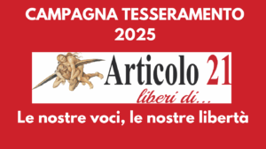 Diventa socio di Articolo 21 con un versamento minimo che per noi sarà prezioso e contribuirà alle molte attività ed iniziative per tenere accesa la luce su storie dimenticate perché scomode o perché di periferia.