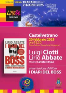 Il prossimo giovedì 20 febbraio, alle ore 18,30, presso il teatro Selinus di Castelvetrano (TP) il giornalista e scrittore Lirio Abbate presenta il suo nuovo libro “I diari del boss” edito da Rizzoli.