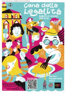 Sabato 21 Giugno alle 20:30 in Piazzale Picelli a Parma si terrà la Cena della Legalità, promossa da Libera Parma.