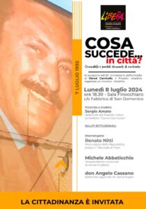 L’appuntamento – indetto in occasione del 32° anniversario dell’omicidio di Gianni Carnicella – è per lunedì 8 luglio alle 18.30, alla Sala Finocchiaro, presso la Fabbrica di San Domenico a Moletta.