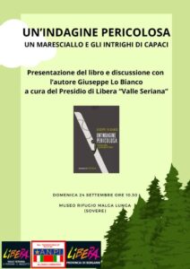 Domenica 24 settembre, presso il rifugio Malga Lunga (ANPI Bergamo) sul Monte Sovere, discuteremo con l’autore Giuseppe Lo Bianco del suo nuovo libro “Un’indagine pericolosa. Un maresciallo e gli intrighi di Capaci”.