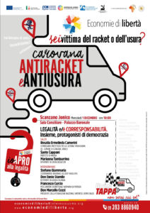 La lunga strada percorsa dalla carovana antiracket e antiusura 2021, del progetto Economie di Libertà, arriva alla tappa finale: mercoledi 1 dicembre alle ore 18.00 nella sala consiliare di Scanzano Jonico.