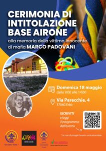 Erbé (VR) 18/5, intitolazione della base scout Airone alla vittima innocente di mafia Marco Padovani