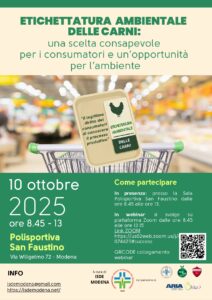 I relatori si propongono di offrire ai partecipanti strumenti e chiavi di lettura per affrontare con competenza e senso critico il tema dell’etichettatura ambientale delle carni. L’incontro intende approfondire il legame tra produzione e consumo di carne, impatto ambientale, origine della carne, definizione ambientale di allevamento intensivo, benessere animale e scelte legislative, mettendo in luce ciò che spesso non viene comunicato al grande pubblico.