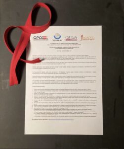 La decisione assunta dal Coordinamento della Cpo è quella di chiedere a colleghe e colleghi di affiggere nei luoghi di lavoro una locandina sul tema che non possa passare inosservata: un cartoncino nero, su cui incollare il Manifesto di Venezia e apporre un nastro rosso.