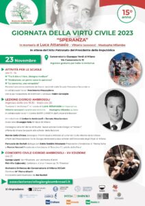 Il 23 novembre 2023 a Milano si svolgerà, sotto l’Alto Patronato del Presidente della Repubblica, la 15esima edizione della Giornata della Virtù Civile, promossa dall’Associazione Civile Giorgio Ambrosoli.