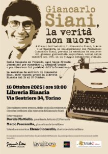 “Giancarlo Siani, la verità non muore” è il titolo dell’iniziativa che prevede sette tappe, undici appuntamenti dalla Campania al Piemonte, passando per Lazio, Emilia-Romagna e Lombardia. Ogni tappa diventerà l’occasione per ricordare il giornalista e confrontarsi pubblicamente sui problemi dell’informazione oggi.