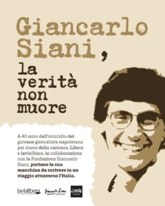 “Giancarlo Siani, la verità non muore” è il titolo dell’iniziativa che prevede sette tappe, undici appuntamenti dalla Campania al Piemonte, passando per Lazio, Emilia-Romagna e Lombardia. Ogni tappa diventerà l’occasione per ricordare il giornalista e confrontarsi pubblicamente sui problemi dell’informazione oggi.