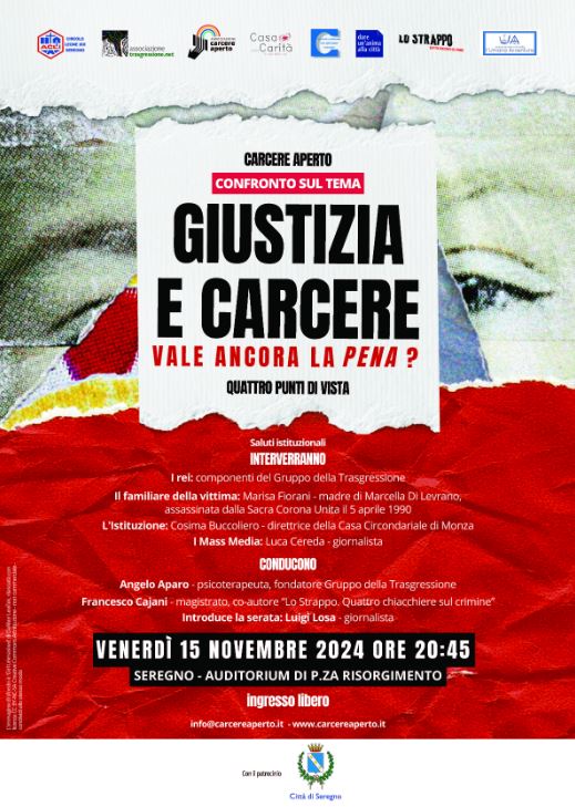 L’associazione Carcere Aperto promuove un incontro dibattito su “Giustizia e Carcere – Vale ancora la pena?”.