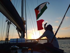 Per mille ragioni, le barche da Tunisi hanno rallentato e noi ci siamo trovati ad aspettare in una baia con tramonti e albe tingono il cielo di rosa, ma non cancellano il fatto che l’attesa ci trattiene a stento mentre assistiamo impotenti a quello che sta succedendo a Gaza.