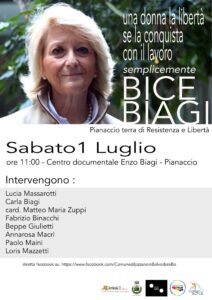 Era il 25 aprile e mia madre Bice Biagi era mancata all’improvviso da poche settimane quando Beppe Giulietti, in collegamento con Pianaccio, l’ha ricordata con parole di stima e di affetto.