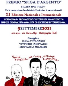 Il Premio “Spiga d’argento Fidapa Bpw Italy” per la cultura, la cooperazione, la solidarietà, l’amicizia e la pace tra i popoli, riconoscimento nazionale e internazionale giunto alla XI edizione e dedicato quest’anno a Luca Attanasio, l’ambasciatore italiano ucciso in Congo il 22 febbraio scorso, è stato assegnato alla giornalista e scrittrice Antonella Napoli.