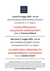 Gli incontri sono organizzati dal Comitato bergamasco per la difesa della Costituzione.