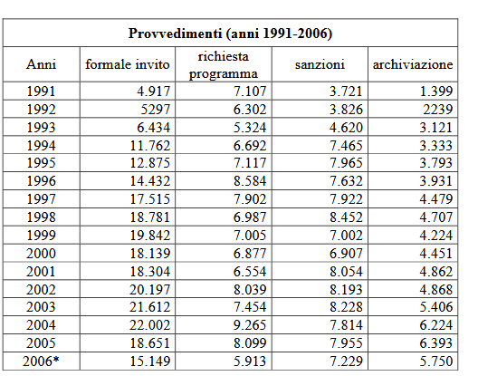 Fig. 3 Trend del formale invito (1991-2006)