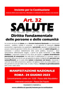 Due grandi manifestazioni nazionali a Roma: il 24 giugno in difesa del diritto alla salute delle persone e nei luoghi di lavoro e per la difesa e il rilancio del Servizio Sanitario Nazionale, pubblico e universale.