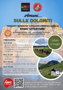 L’appuntamento è il 31 maggio alle ore 9.30 alla partenza della strada che porta al rifugio Città di Fiume, sotto il passo Staulanza”. Si raggiungerà il rifugio a piedi, in compagnia dei Carabinieri Forestale di Belluno che faranno una lezione di educazione ambientale lungo il percorso. Al rifugio ci sarà il Soccorso Alpino che darà informazioni sulla sua attività e utili raccomandazioni per la sicurezza in montagna. Al pomeriggio, dopo il pranzo al sacco e il flash mob, i ragazzi racconteranno la loro esperienza, assieme agli operatori che li accompagnano. Sarà una bella giornata di festa in amicizia, di crescita ecologica e sociale, di confronto.