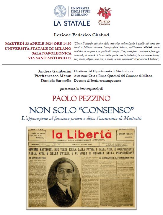 Il Dipartimento di Studi storici dell’Università degli Studi di Milano ricorda l’anniversario del 25 aprile con la tradizionale lezione in ricordo di Federico Chabod.