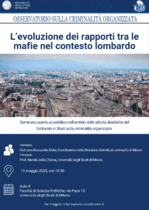 L’incontro – che si configura come una preziosa occasione per analizzare le attuali dinamiche della criminalità organizzata di stampo mafioso in Lombardia – è organizzato nell’ambito del Dottorato in Studi e ricerche sulla criminalità organizzata dell’Università degli Studi di Milano.