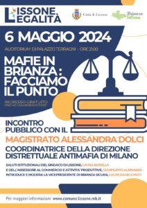 Appuntamento clou del progetto di educazione alla legalità organizzato dal Comune di Lissone (MB) con un’importante collaborazione di Brianza Sicura: lunedì 6 maggio (ore 21) Alessandra Dolci, capo della Direzione Distrettuale Antimafia di Milano, fa il punto sulle mafie in Brianza.