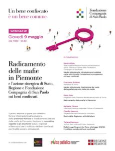 Il primo appuntamento online è giovedì 9 maggio, dalle 11.00 alle 12.30, con l’incontro dal titolo “Radicamento delle mafie in Piemonte e l’azione sinergica dello Stato, Regione e Fondazione Compagnia di San Paolo sui beni confiscati”.