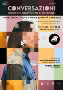 Di questo nuovo immaginario digitale delle mafie, che reinterpreta e rilancia il consenso criminale, parleremo al terzo appuntamento della rassegna “Conversazioni. Coordinate sgrammaticate di democrazia”. L’incontro, intitolato “Mafie, social media e nuove identità criminali“, sarà un’occasione per discutere insieme al Prof. Ravveduto l’evoluzione delle strategie comunicative delle mafie, il ruolo dei social network nella narrazione criminale e le sfide che questi fenomeni pongono all’antimafia sociale.