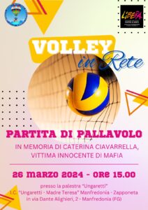 Dopo la partita, gli alunni che hanno partecipato lo scorso 21 marzo a Roma alla XXIX “Giornata della Memoria e dell’Impegno in ricordo delle vittime innocenti delle mafie” condivideranno le loro riflessioni e considerazioni mentre altri ci racconteranno la storia di Caterina vita attraverso i loro occhi.