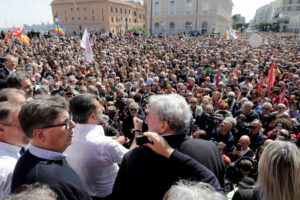 Bari ha allargato le sue braccia e il suo mare ad una folla oceanica che compatta, da ogni angolo della Puglia e non solo, armata di buona volontà, voglia di verità e fascia tricolore a prescindere dalle attribuzioni reali, è scesa in strada accanto al sindaco Decaro a poche ore dalla nomina dei tre commissari che spulceranno le carte di palazzo di Città per verificare una eventuale ipotesi di scioglimento per infiltrazioni mafiose.