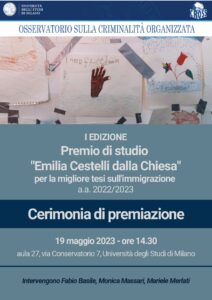 La cerimonia di premiazione della I edizione del premio “Emilia Cestelli dalla Chiesa”, per la miglior tesi sull’immigrazione, si svolgerà venerdì 19 maggio 2023 alle ore 14.30 presso l’Aula 27, via Conservatorio 7, Università degli Studi di Milano.