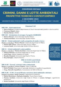 Il Convegno sociale “Crimini, danni e lotte ambientali. Prospettive teoriche e contesti empirici” – in programma il 2 dicembre 2024 presso la Sala Lauree di via Conservatorio 7, Università degli Studi di Milano – si propone di stimolare il dibattito scientifico e pubblico su temi cruciali del nostro presente, con l’obiettivo di sensibilizzare e coinvolgere non solo la comunità universitaria e studentesca ma anche la cittadinanza, la politica, le istituzioni e la società civile organizzata.