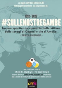 In occasione del trentennale delle stragi Libera organizza il torneo “SULLE NOSTRE GAMBE”, una sfida di calcio a 5, basket e beach-volley