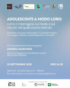 “Adolescenti a modo loro: come ci interrogano sul modo e sul mondo nel quale stiamo vivendo” è il titolo del seminario promosso da Libera, in collaborazione con altri soggetti partner, a conclusione del progetto “È possibile insieme. Un impegno collettivo di partecipazione e comunità”.