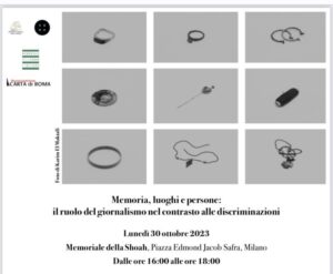 Lunedì 30 ottobre dalle 16:00 alle 18:00 a Milano presso il Memoriale della Shoah si svolgerà un incontro formativo organizzato dalla Associazione Carta di Roma “Memoria, luoghi e persone: il ruolo del giornalismo nel contrasto alle discriminazioni”.