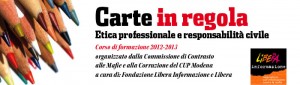 A Modena, dal prossimo 6 dicembre, prende il via un corso di formazione pensato dai professionisti per gli iscritti agli ordini. Un percorso promosso da Libera Informazione, Libera e dal Comitato unitario delle professioni di Modena.
