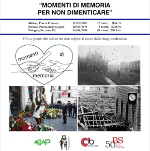 Dal 31 luglio 2024 al 2 agosto 2024 si tiene l’iniziativa Momenti di memoria per non dimenticare, la storica staffetta che dal 1987 collega MilanoBrescia e Bologna, città colpite dalle stragi terroristiche.
