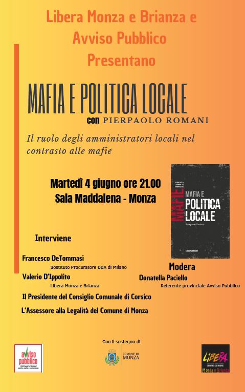 Pierpaolo Romani, giornalista, coordinatore nazionale di Avviso Pubblico sarà protagonista sarà protagonista di una iniziativa rivolta ai cittadini di Monza sul tema del rapporto tra organizzazioni criminali e politica.