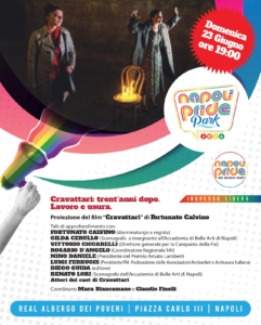 Il film “Cravattari”, con la regia di Fortunato Calvino, che ha scritto il testo e l’ha portato in teatro, per la prima volta, ben 30 anni fa e che ha vinto, tra tanti altri, anche a livello internazionale, il premio Giuseppe Fava 1995 e quello intitolato a Giancarlo Siani nel 1997, sarà proiettato domenica 23 maggio, alle ore 19:00, al Real Albergo dei poveri, in piazza Carlo III, nell’ambito del PARK PRIDE 2024.