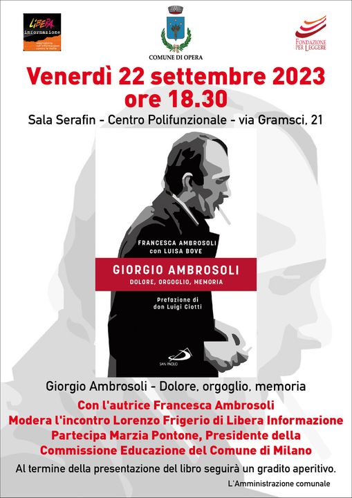 Francesca Ambrosoli racconterà la storia di suo padre, in occasione della presentazione del libro scritto con Luisa Bove: “Giorgio Ambrosoli. Dolore, orgoglio, memoria”, edito da San Paolo, con la prefazione di Don Ciotti.