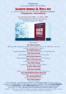 Presenteremo l’ultimo libro di Ranieri Razzante, scritto con Pierguido Iezzi, e con l’occasione si parlerà di algoritmi criminali.