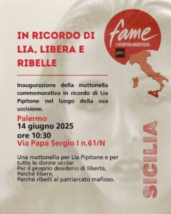 La storia di Lia, uccisa perché ribelle al patriarcato mafioso, è la storia di tante donne che sono morte in nome di un sogno di libertà. È una storia che già da più di un anno abbiamo scelto, insieme a tanti e tante, di raccontare proprio a partire dall’Arenella, il suo quartiere, nel luogo della sua uccisione, dove finalmente imprimeremo un segno di memoria e impegno.