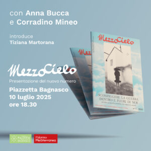 Sarà presentato in piazzetta Bagnasco, alle 18.30 di giovedì 10 Luglio, il primo numero semestrale di “Mezzocielo”, storica rivista che si è distinta per le tematiche e le lotte femministe in Sicilia, fondata nel ’91 da un gruppo di donne fra cui Letizia Battaglia, Simona Mafai e Rosanna Pirajno. A dirigerla oggi è la giornalista Tiziana Martorana.