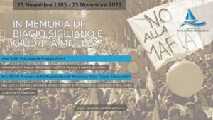 Sabato 25 novembre 2023 il Centro Studi Paolo e Rita Borsellino e l’Associazione dei Giuristi Siciliani A.GIU.S. con il patrocinio gratuito dell’Ottava Circoscrizione di Palermo, organizzano due eventi in memoria di Giuditta Milella e Biagio Siciliano, studenti del Liceo Meli morti nel tragico incidente del 1985 che coinvolse un’auto di scorta dei giudici Guarnotta e Borsellino.