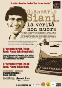 “Giancarlo Siani, la verità non muore” è il titolo dell’iniziativa che prevede sette tappe, undici appuntamenti dalla Campania al Piemonte, passando per Lazio, Emilia-Romagna e Lombardia.