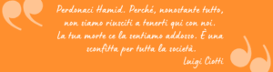 Non ti dimenticheremo, Hamid. La tua morte ci spezza il cuore. Resteremo sulla strada per tutte le altre persone che come te cercano a fatica di rimanere a galla, affrontando crisi interiori e ingiustizie esterne, paure, giudizi e violenze, anche istituzionali.