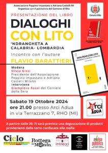 L’Associazione “Peppino Impastato e Adriana Castelli” Milano, con il patrocinio del Comune di Rho (MI), ha il piacere e l’onore di organizzare la presentazione del libro “Dialoghi con lito. ‘Ndrangheta a Calabria-Lombardia” di Flavio Barattieri.