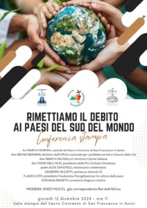 Si terrà domani (12 dicembre) alle 11 presso la Sala Stampa del Sacro Convento di San Francesco in Assisi, la conferenza stampa dal titolo “Rimettiamo il debito ai Paesi del sud del mondo”.