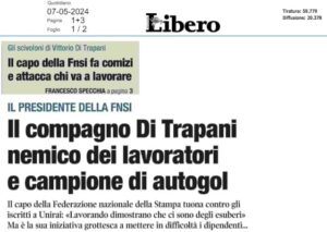 Si preferisce invece colpire la persona, Di Trapani, con insinuazioni assurde  per tentare di isolarlo con l’unico scopo di screditarne il ruolo e la funzione di presidente della Federazione della Stampa Italiana. Si tenta di colpirlo sul piano privato e professionale addirittura arrivando all’aberrante accusa che lavorare con determinazione e impegno nella propria redazione al di là della propria qualifica sia una colpa e non un merito. Questo è il clima che la Destra meloniana sta creando nel nostro Paese: colpire sempre le voci del dissenso per intimidire tutti.