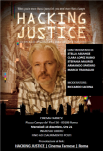 Mercoledi 13 Dicembre al Cinema Farnese (Piazza Campo de’ Fiori) serata dedicata a Julian Assange e alla lotta per la sua libertà.